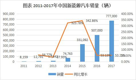 2017年,鋰離子電池主要應(yīng)用市場(chǎng)增速放緩,全年全球鋰離子電池產(chǎn)業(yè)規(guī)模超過(guò)3000億人民幣,增速較2016年下滑4個(gè)百分點(diǎn)。在新能源汽車推廣政策繼續(xù)推動(dòng)下,2017年中國(guó)電動(dòng)汽車產(chǎn)量達(dá)到65萬(wàn)輛,在全球電動(dòng)汽車市場(chǎng)占比將進(jìn)一步提升。