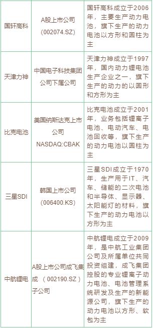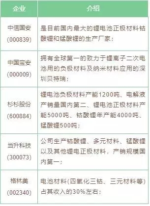 電池上游重點(diǎn)企業(yè)