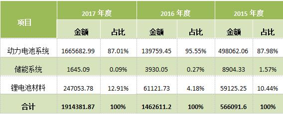 公司主營(yíng)業(yè)務(wù)收入來(lái)自動(dòng)力電池系統(tǒng)、儲(chǔ)能系統(tǒng)和鋰電池材料的銷售,具體情況如下: