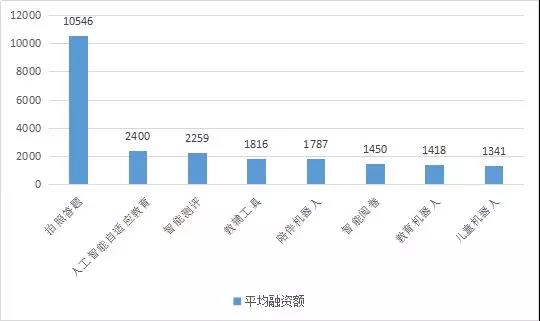 人工智能自適應(yīng)教育項(xiàng)目的融資事件數(shù)量很少排在倒數(shù)第二的位置,但平均融資額卻達(dá)到了第二??梢?jiàn)雖然行業(yè)處于早期階段,但相對(duì)于其他細(xì)分領(lǐng)域來(lái)說(shuō)更受資本的青睞。